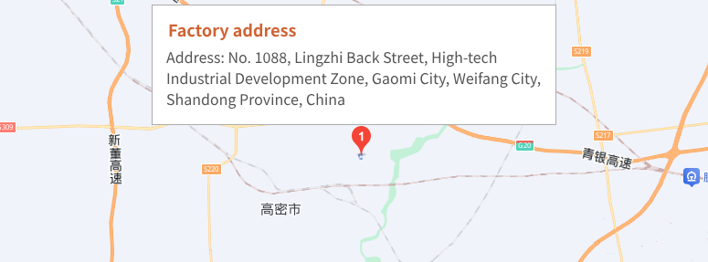Factory address: No. 1088 Lingzhi Back Street, High-tech Industrial Development Zone, Gaomi City, Weifang City, Shandong Province