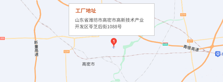 工厂地址:山东省潍坊市高密市高新技术产业开发区苓芝后街1088号