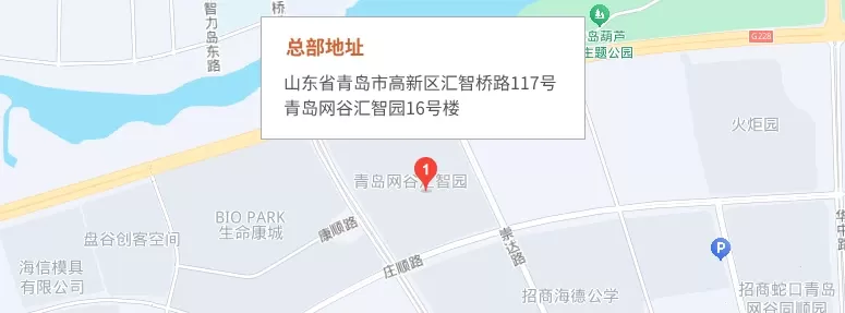 总部地址:山东省青岛市高新区汇智桥路117号青岛网谷汇智园16号楼